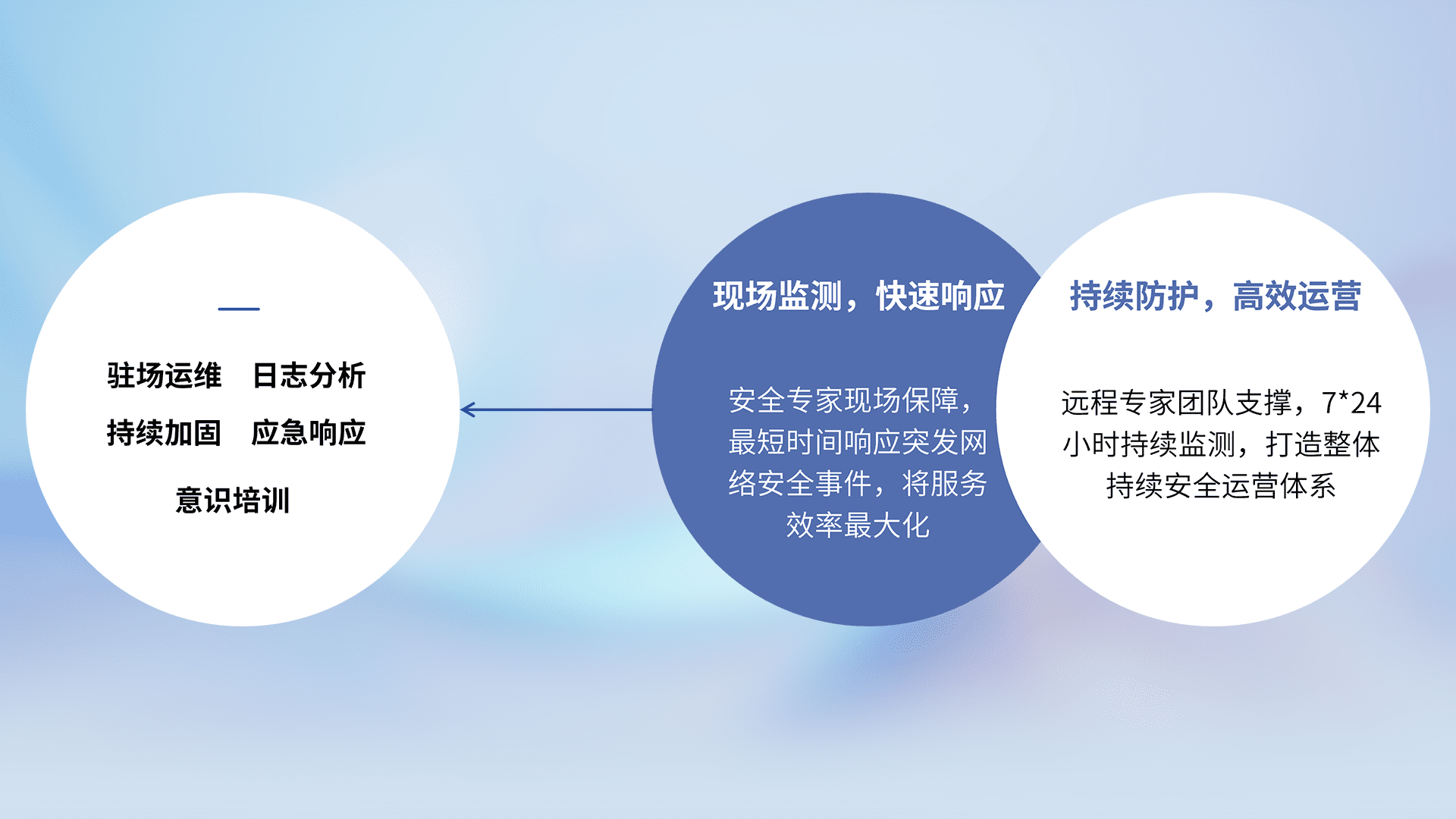 针对客户行业特性,,提供专属的一站式安全管理服务,,帮助客户全面感知网络空间威胁,,,通过安全专家的线上、、、、线下防护支持,,,,实现风险闭环,,,,将安全保障常态化,,,为客户打造常态化安全运维运营服务。。。。